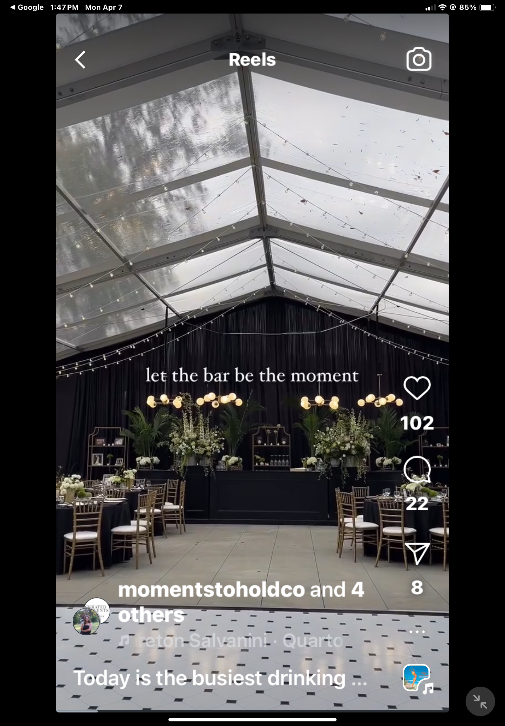CEILING. FLORALS. See prior caption. Also like having something behind band. Maybe a row of florals at base of stage? Too much? I don’t think it’s super huge tent though. I would like them on a stage, but again, might not make sense with the space we have to work with. Don’t want the dance floor to become too small. I often see that at weddings, the floor is made too small.